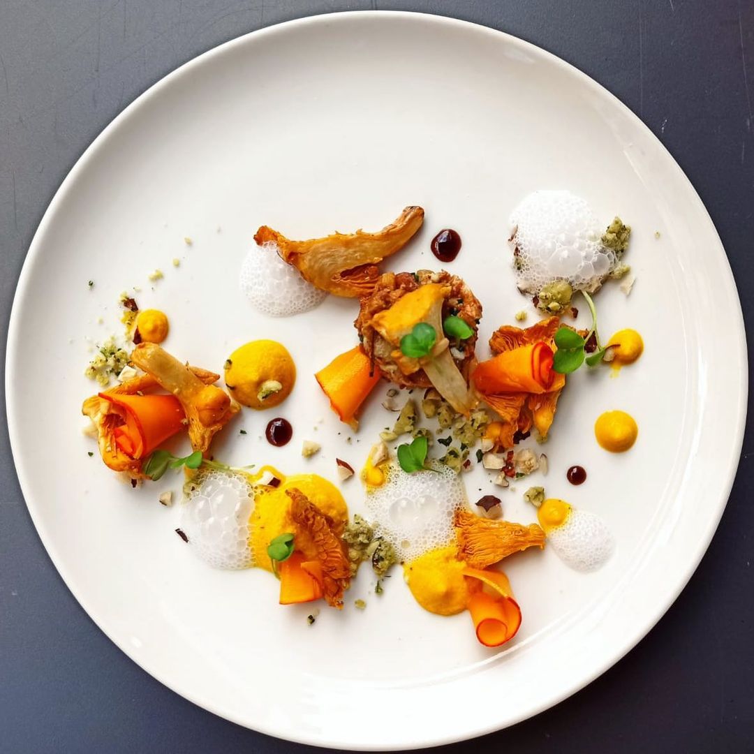 Crêpe en sabayon de légumes confits, chips de betterave Chioggia *** Rôtie de lotte lardée, lentilles beluga aux herbes fraiches, et mousse de chou-fleur *** Crème Catalane au parfum de Havane, mangue rôtie au rhum et poivre de Sichuan, sorbet lapsang et croustillant havane réglisse